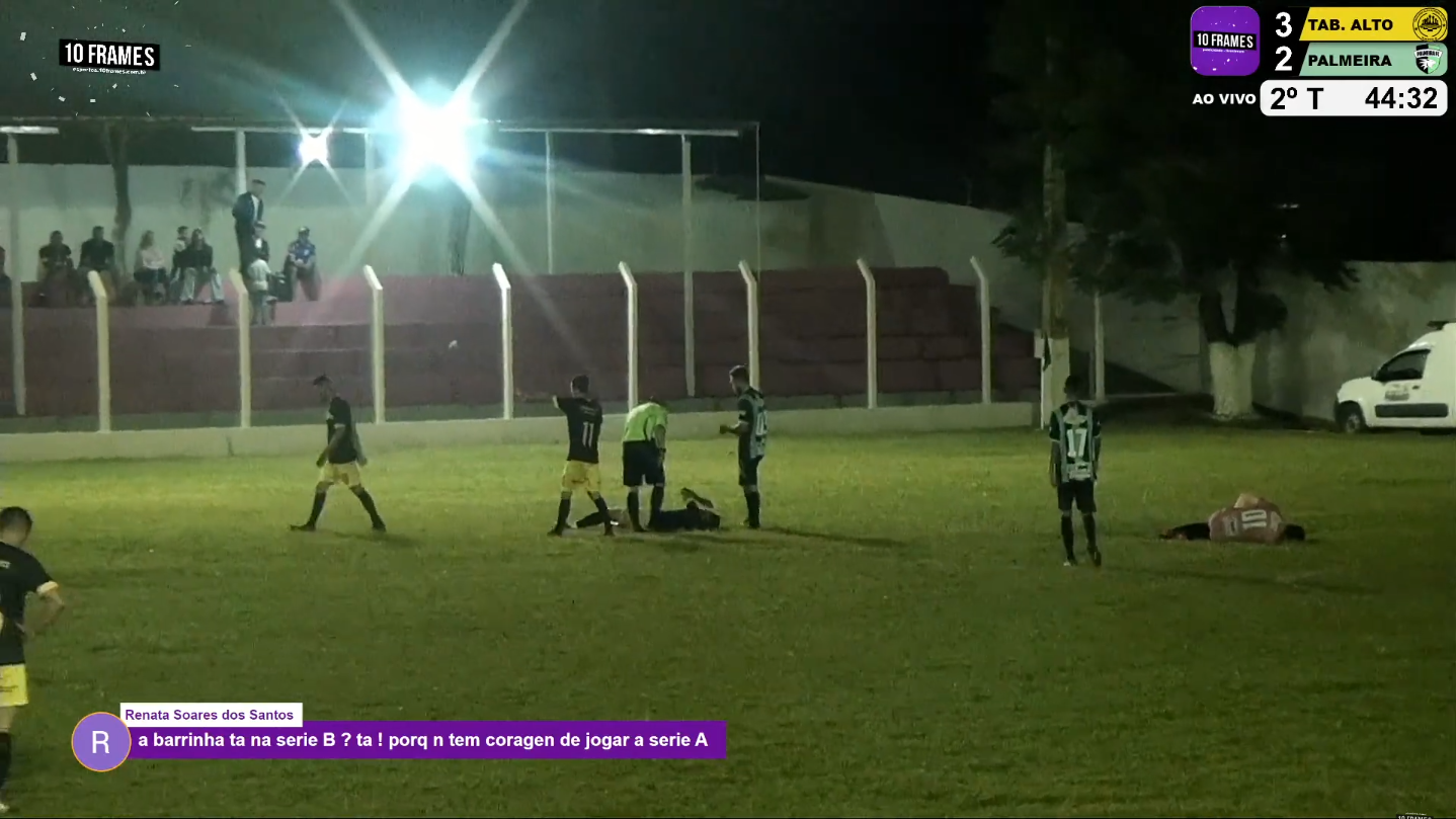 Gol que colocou a Palmeira de novo no jogo e fez com que a equipe do Tabuleiro Alto não estacionasse no placar, ainda assim, abalou muito a equipe. Em seguida, tiveram algumas chances para o segundo gol da equipe comandada pelo ilustre Tio Vá. Placar se manteve até os 50 minutos quando o árbitro Pato Rouco encerrou a primeira etapa.