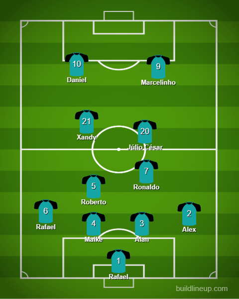 Os dois times a princípio em um 4-4-2 mas com muita movimentação dos seus meias mais avançados fazendo constantemente inversões dos lados, assim sempre variando na criação das jogadas ofensivas.