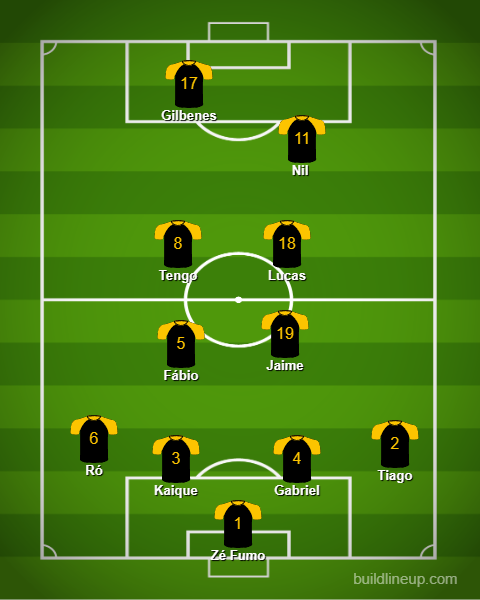 (Tabuleiro Alto) 4-4-2: Zé Fumo, Tiago, Gabriel, Kaique, Ró, Fábio, Jaime, Tengo, Lucas, Nil e Gilbenes. Treinador: Jurandir.