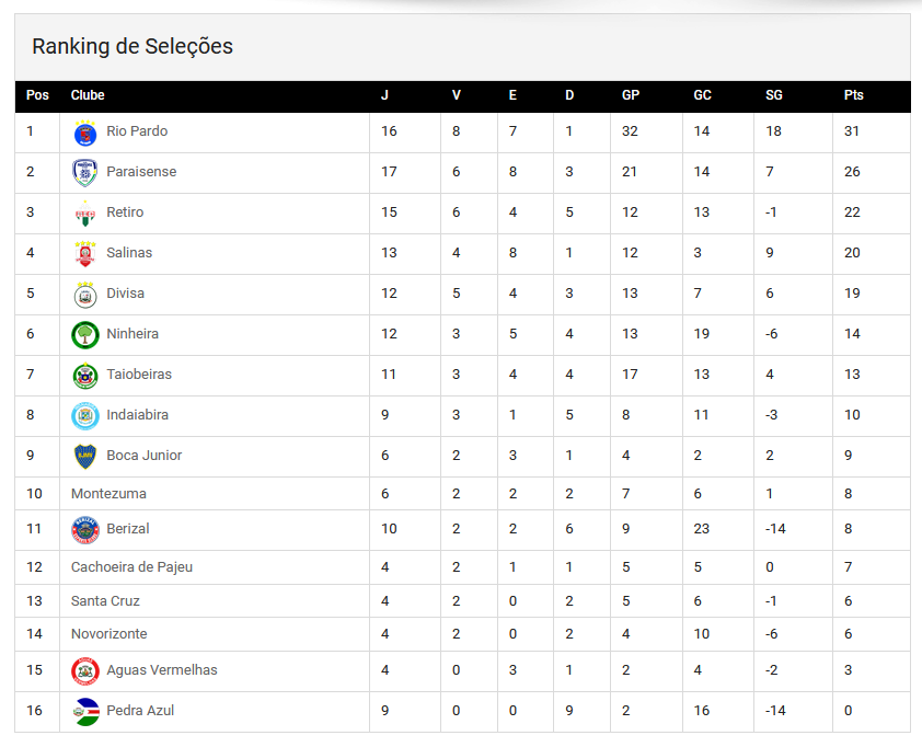 Rio Pardo dona do melhor ataque da região conforme ranking histórico são incríveis 32 gols marcados nos últimos 2 anos o que dá uma média de 2 gols por jogo, o time tem 8 vitórias nos últimos 16 jogos, e sua última derrota foi em 24/07/2022 quando perdeu para o Retiro Esporte Clube por 2×0