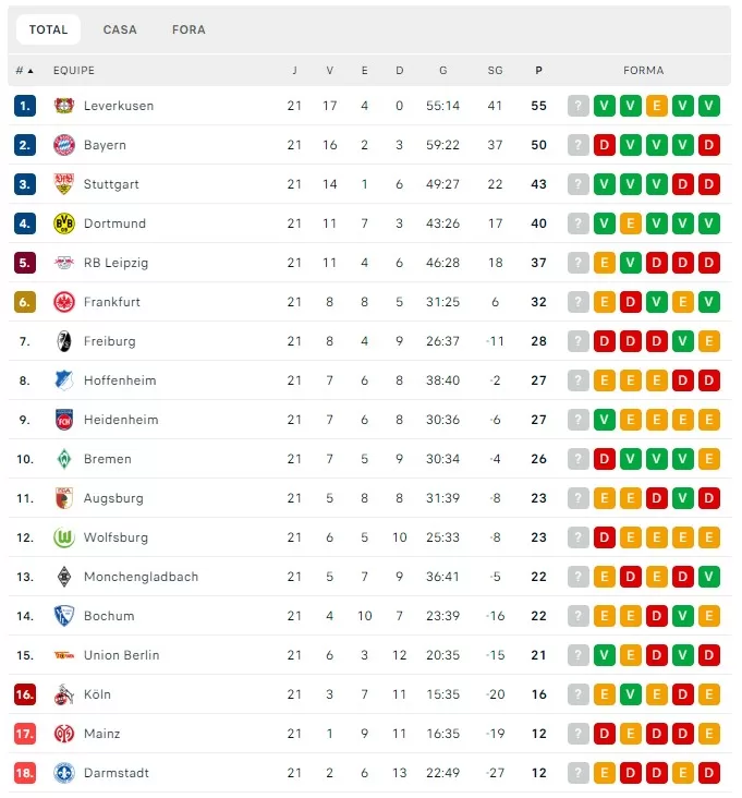 Agora resta saber se o Leverkusen vai ter forças para se manter na ponta? Ou Bayern, que já mostrou sua grande capacidade de recuperação, vai se recuperar e voltar para briga em busca do 12º titulo seguido da Busdesliga.