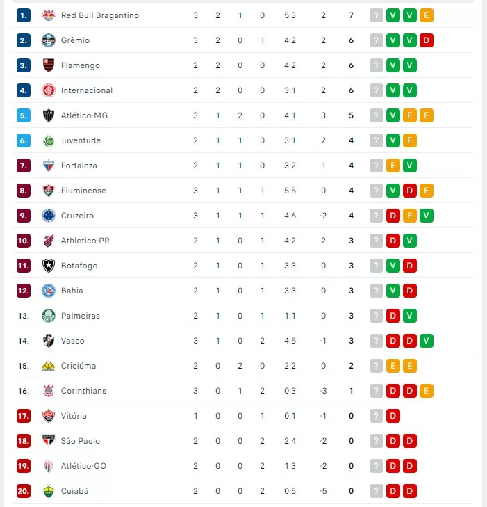 Atlético pula para 5º com cinco pontos e Cruzeiro cai para 9ª com 4 pontos;