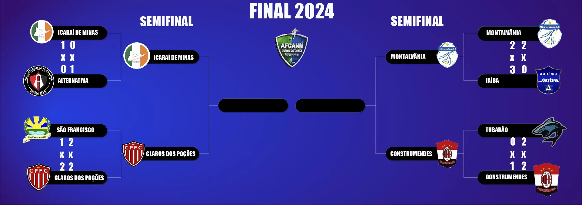 A.A Jaíba | 0 0(5) | X X | 0 0(4) | A.D. Independente |
