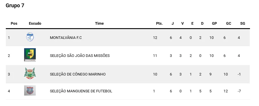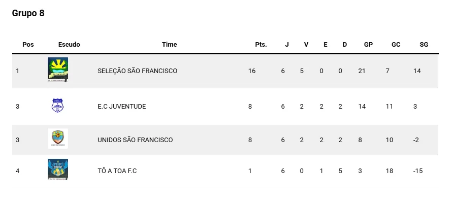 São Francisco | 2 0(4) | X X | 2 0(3) | Verdelândia |