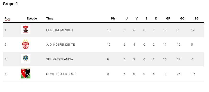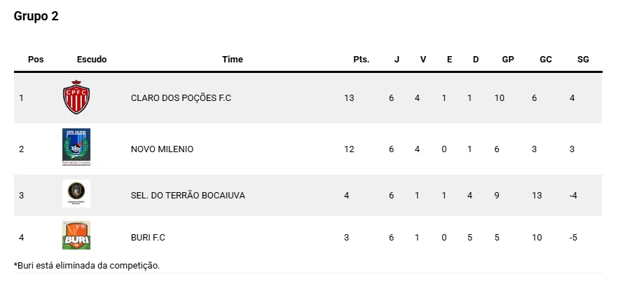 Claros dos Poções | 1 3 | X X | 0 3 | E.C Juventude |