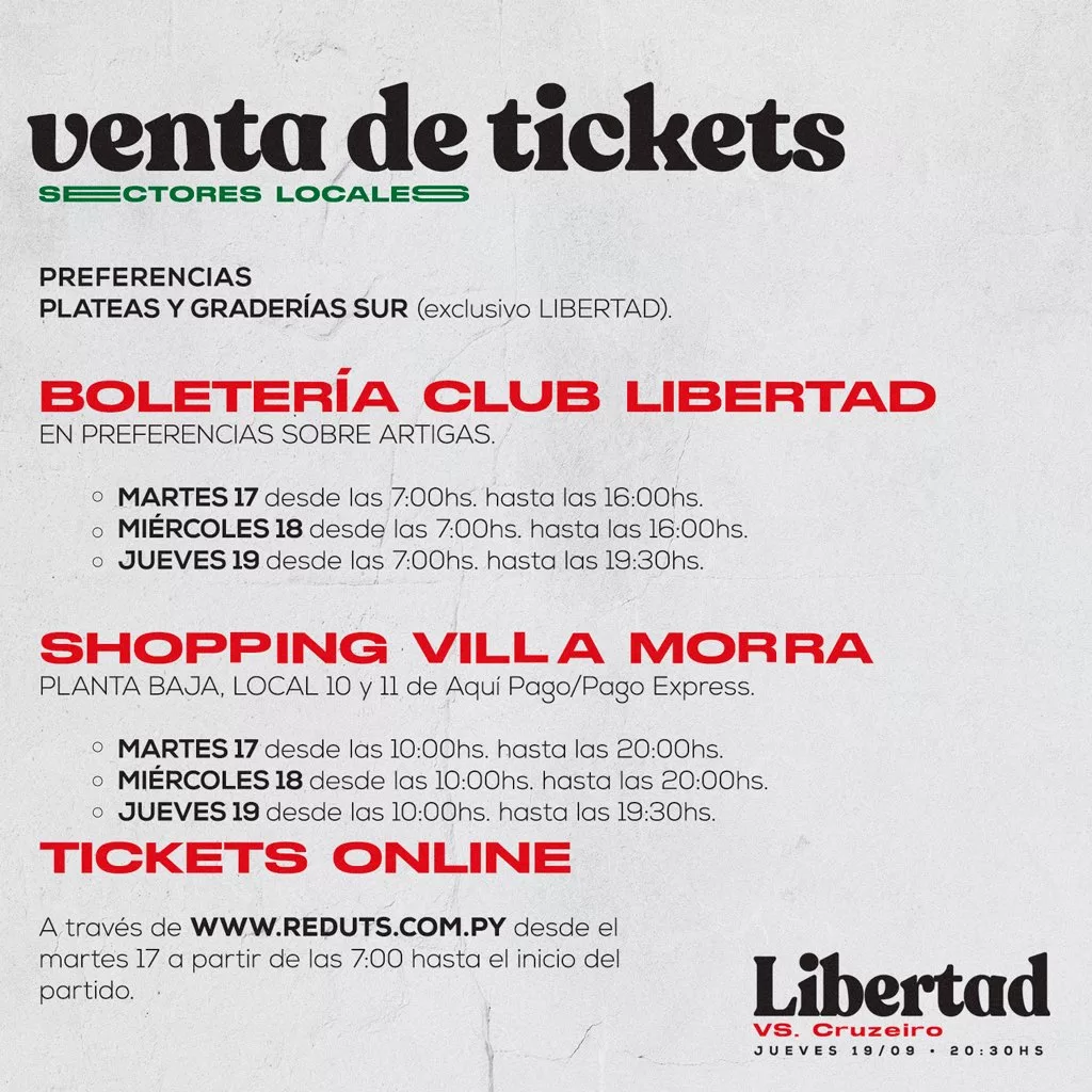 O Libertad não divulgou parciais de venda de ingressos.
