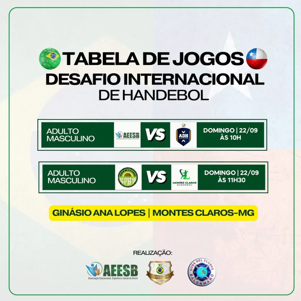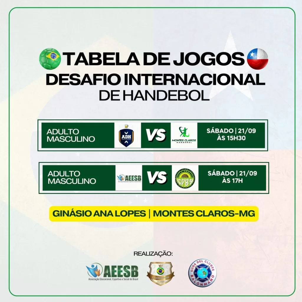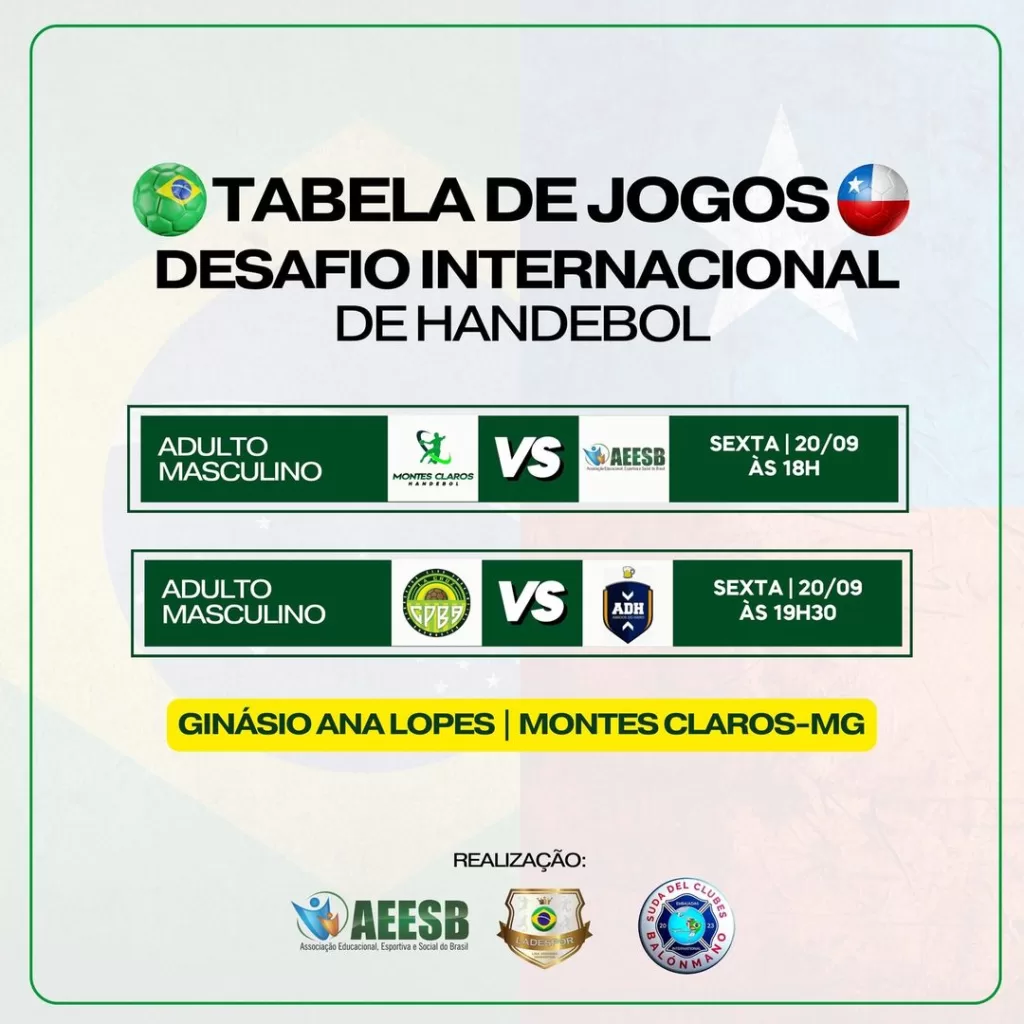 Montes Claros Handebol venceu o último jogo do desafio internacional de handebol diante do Club Provincial Balonmano Aconcágua da cidade de La Cruz, Chile, por 30×26, em partida disputada no Ginásio Ana Lopes em Montes Claros, no sábado o time de montes claros já havia vencido o amigos do handebol por 43×19.