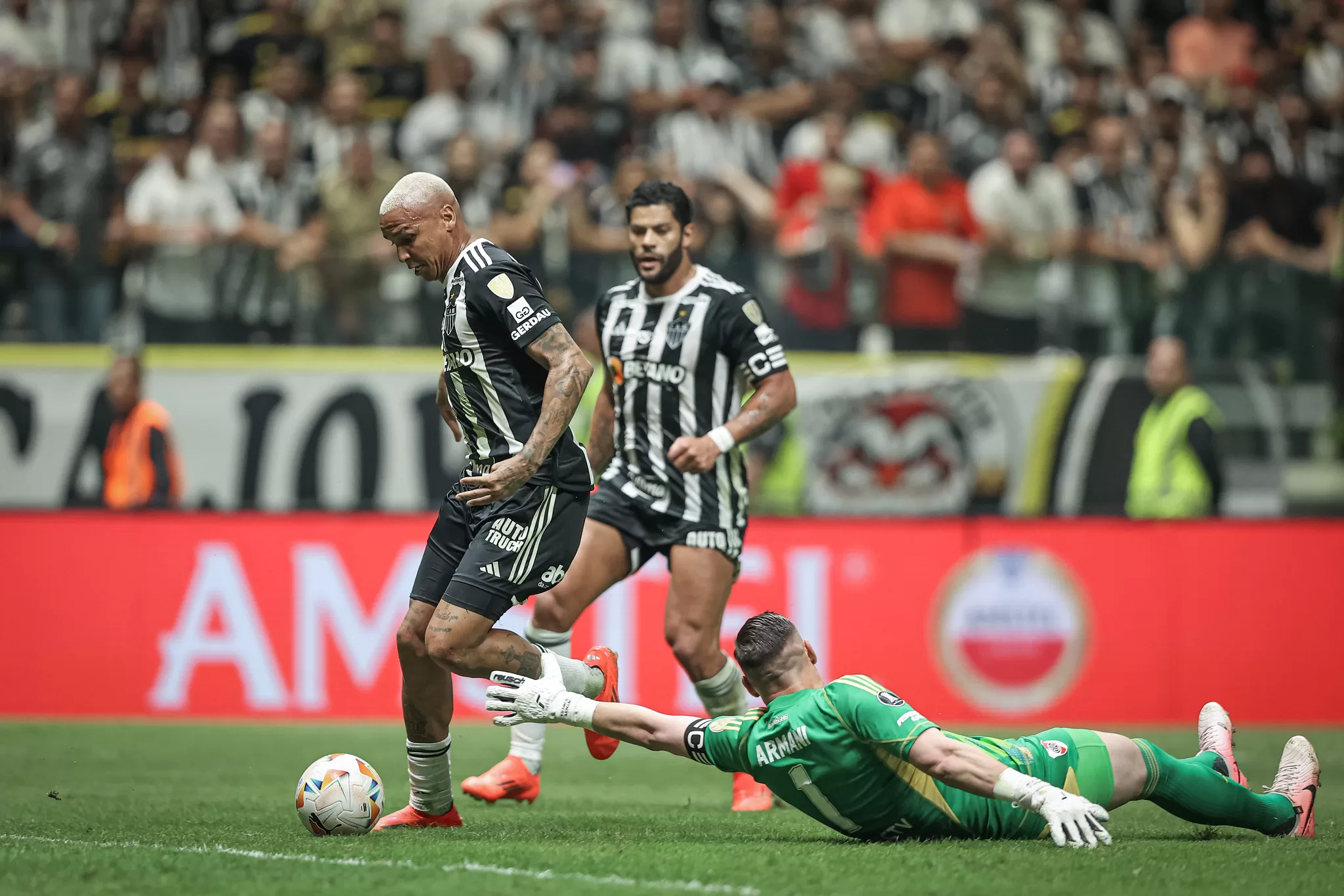 O Atlético Mineiro fez uma atuação de gala na Arena MRV, completamente lotada, nesta terça-feira (22), ao vencer o River Plate por 3 a 0 no jogo de ida da semifinal da Copa Libertadores. O técnico Gabriel Milito surpreendeu ao escalar Deiverson como centroavante, acompanhado de Hulk pela direita e Paulinho na esquerda, com Fausto Vera reforçando o meio-campo.