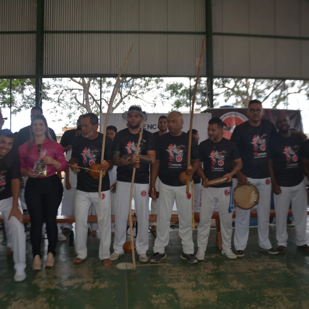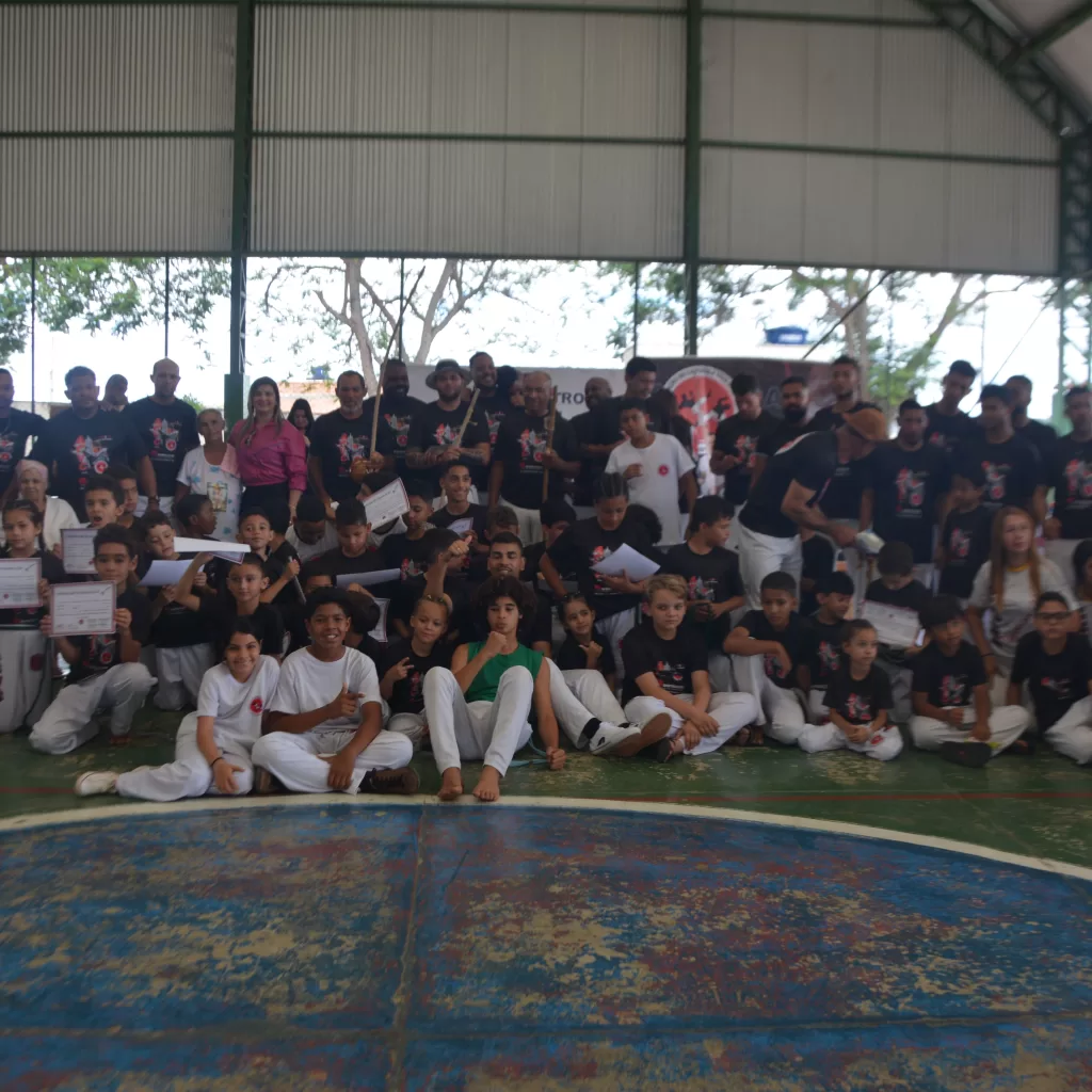 Um momento especial foi a graduação de dois alunos destacados: Alex “Capoeira” Sousa e João “Dão Bigode” Paulo, que receberam a graduação de instrutores, reforçando a importância do trabalho contínuo e o compromisso com a capoeira em suas comunidades.