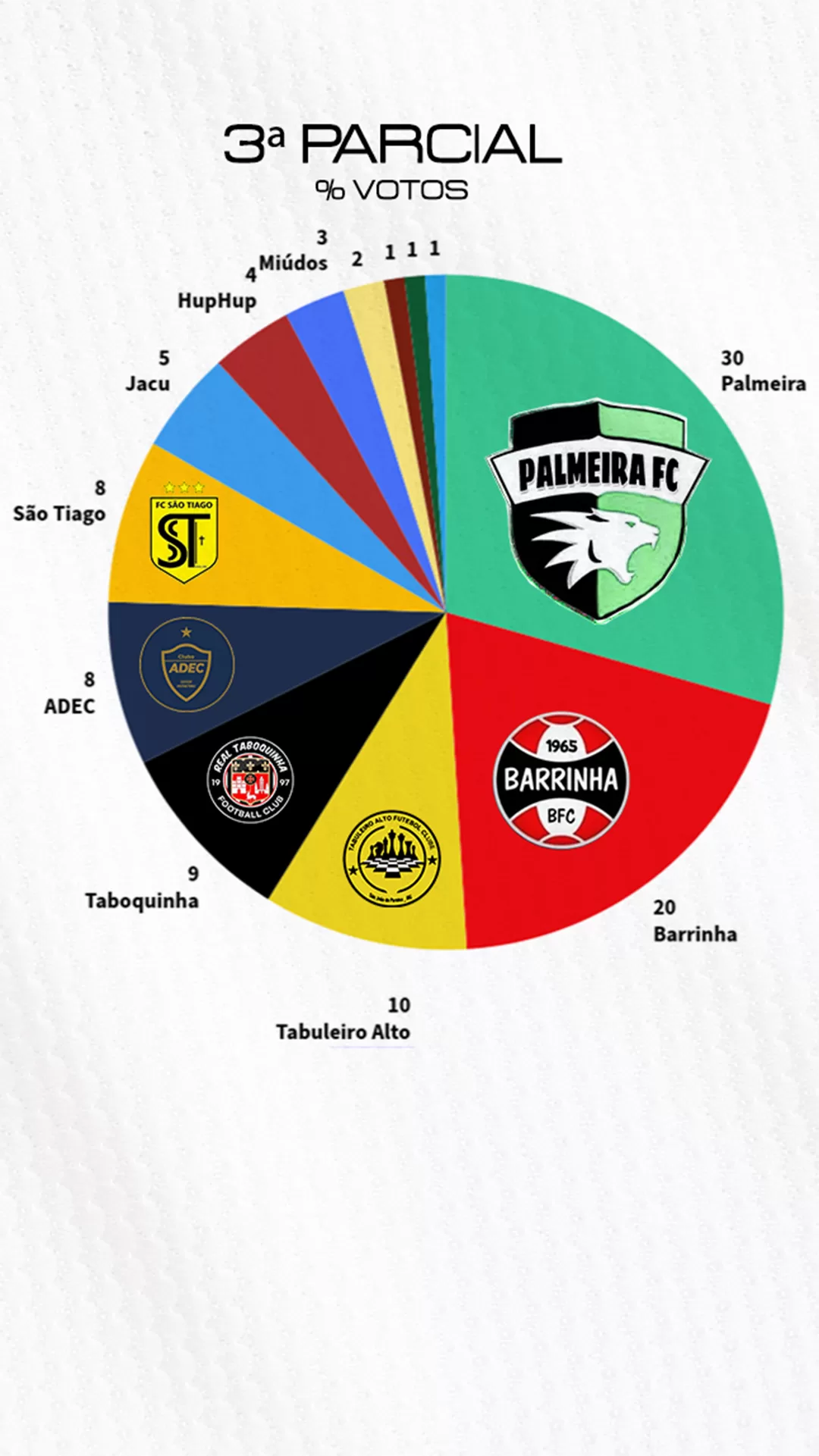 A pesquisa conta com todos os times que disputaram a primeira divisão a partir de 2017, ou que já confirmarão que disputarão em 2025, exceto as que já encerraram suas atividades, em ordem alfabética: ADEC, Barrinha, Boa Sorte, HupHup, Jacu, Mandacaru, Miúdos, Os Netos, Palmeira, Paraiso City, São Tiago, Taboquinha e Tabuleiro Alto