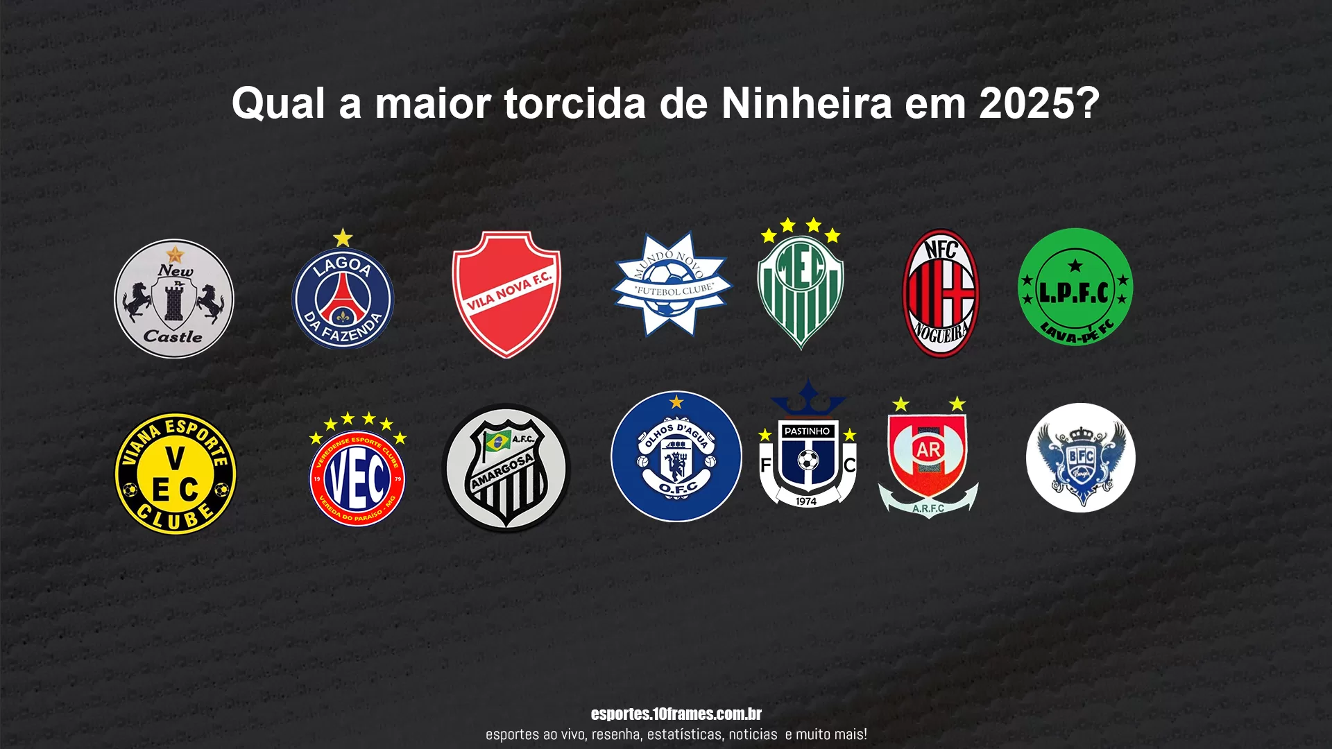 A pesquisa conta com todos os times que disputaram a primeira divisão a partir de 2017, ou que já confirmarão que disputarão em 2025, exceto as que já encerraram suas atividades, em ordem alfabética: Amargosa, Areão, Borges, Lagoa da Fazenda, Lavapes, Mangueiro, Mundo Novo, New Castle, Nogueira, Olhos D’Agua, Pastinho, Veredense, Viana e Vila Nova.