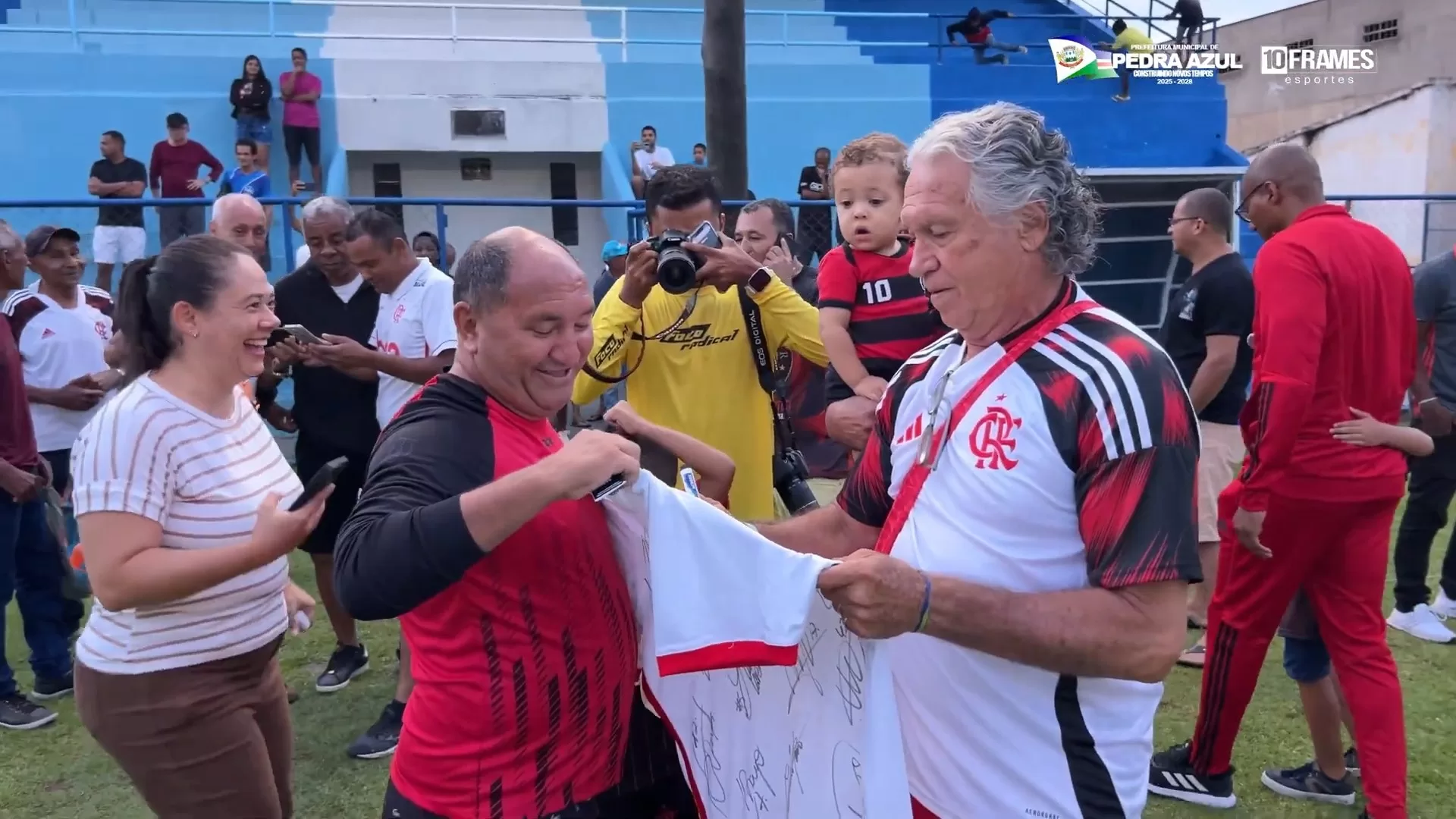 O Canal 10 Frames esteve em Pedra Azul em parceria com a Prefeitura Municipal para acompanhar de perto o tão aguardado duelo entre a Seleção Master de Pedra Azul e o Flamengo Master. Porém, devido às fortes chuvas que atingiram a cidade no último sábado (6), a bola não pôde rolar como todos esperavam.