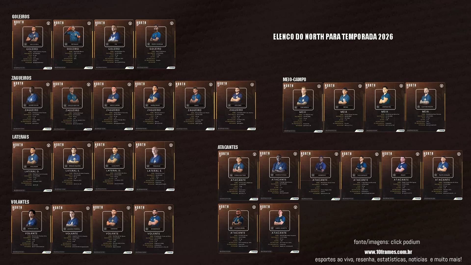 O North Esporte Clube divulgou oficialmente a lista inicial do elenco com 30 jogadores aptos para a disputa do Campeonato Mineiro de Futebol 2026, que tem início marcado para o dia 10 de janeiro de 2026.