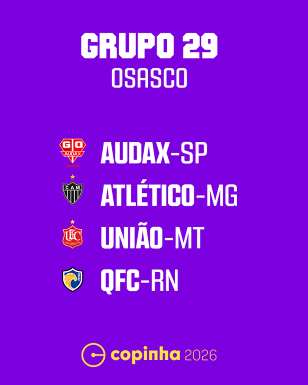 A seguir, confira as tabelas completas dos clubes mineiros na fase de grupos da Copinha 2026, com datas, horários e transmissões: