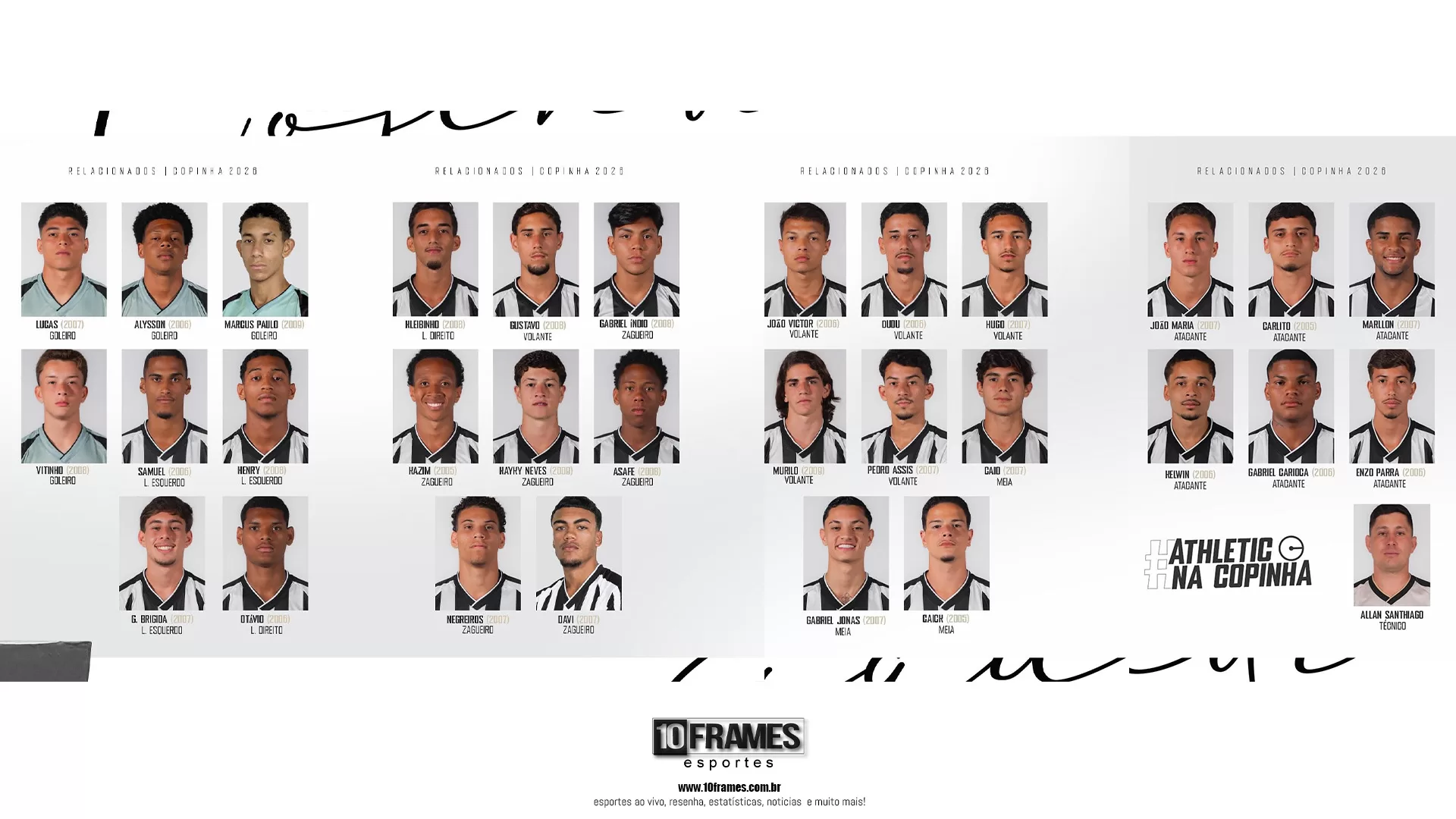 O Athletic Club oficializou a relação de atletas que irão representar o clube na Copa São Paulo de Futebol Júnior 2026, principal competição de base do país. A equipe de São João del-Rei aposta em um elenco jovem e promissor para buscar protagonismo no torneio.